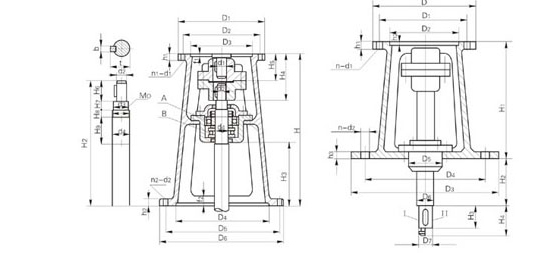 | 機(jī)架型號(hào) | 減速機(jī)型號(hào) | D1 | D2 | D3(H8) | D4(H9) | D5 | D6 | n1-d1 | n2-d2 | H | H2 | H3 | H4 | H5 | H6 | H8 | H8 | H9 |