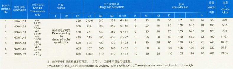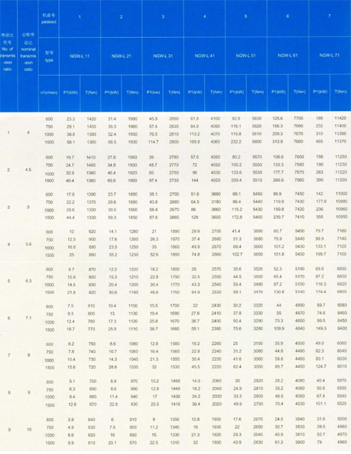 產(chǎn)品由NGW—L型單級L11-L71,兩級L42—L122兩種系列組成,適用于;臺金起重運輸輕化及通用機械設備,適用條件如下: