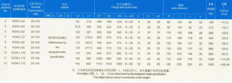 產(chǎn)品由NGW—L型單級L11-L71,兩級L42—L122兩種系列組成,適用于;臺金起重運輸輕化及通用機械設備,適用條件如下: |